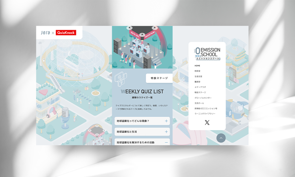 本プロジェクトは、エンターテインメントと知性を融合させたメディア「QuizKnock」を運営する株式会社baton様と日本最大の発電会社である株式会社JERA様による、全国の中高生をメインターゲットとした、エネルギーに関する情報発信を目的とした特設サイトの立ち上げを目指すものでした。
